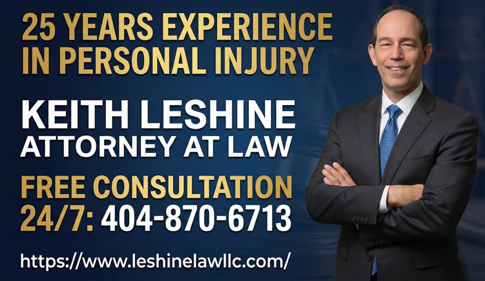 Choosing the right personal injury attorney can significantly impact the outcome of your case. With 25 years of focused experience in personal injury law, Keith Leshine Attorney At Law is dedicated to helping clients secure the justice and compensation they deserve. Contact us: 404-870-6713 for a free consultation!